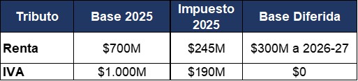 El descalce: Hay $300M de base que causa IVA ($57M) pero NO causa Renta en 2025.
